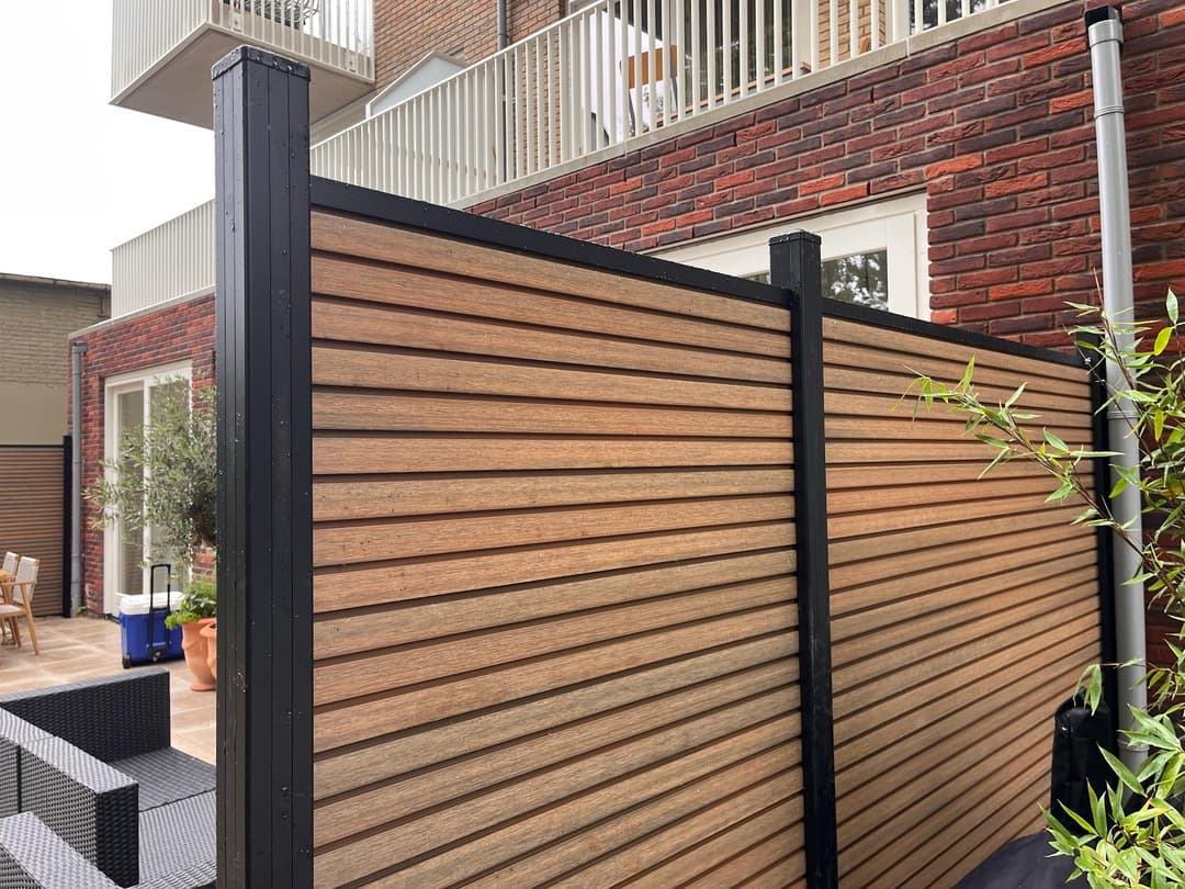 Een houten schutting geeft een warme en natuurlijke uitstraling, maar vraagt om onderhoud en heeft een kortere levensduur. Een kunststof schutting is dan weer licht en voordelig, maar kan sneller verkleuren en oogt vaak minder natuurlijk. Een composiet schutting biedt het beste van beide werelden: de luxe uitstraling van hout gecombineerd met de duurzaamheid van kunststof. Daarnaast is een composiet schutting kleurvast en vrijwel onderhoudsvrij. Wil je een duurzame en stijlvolle tuinoplossing? Laat dan een composiet schutting plaatsen door onze ervaren vakmensen. Vraag gratis een offerte aan!